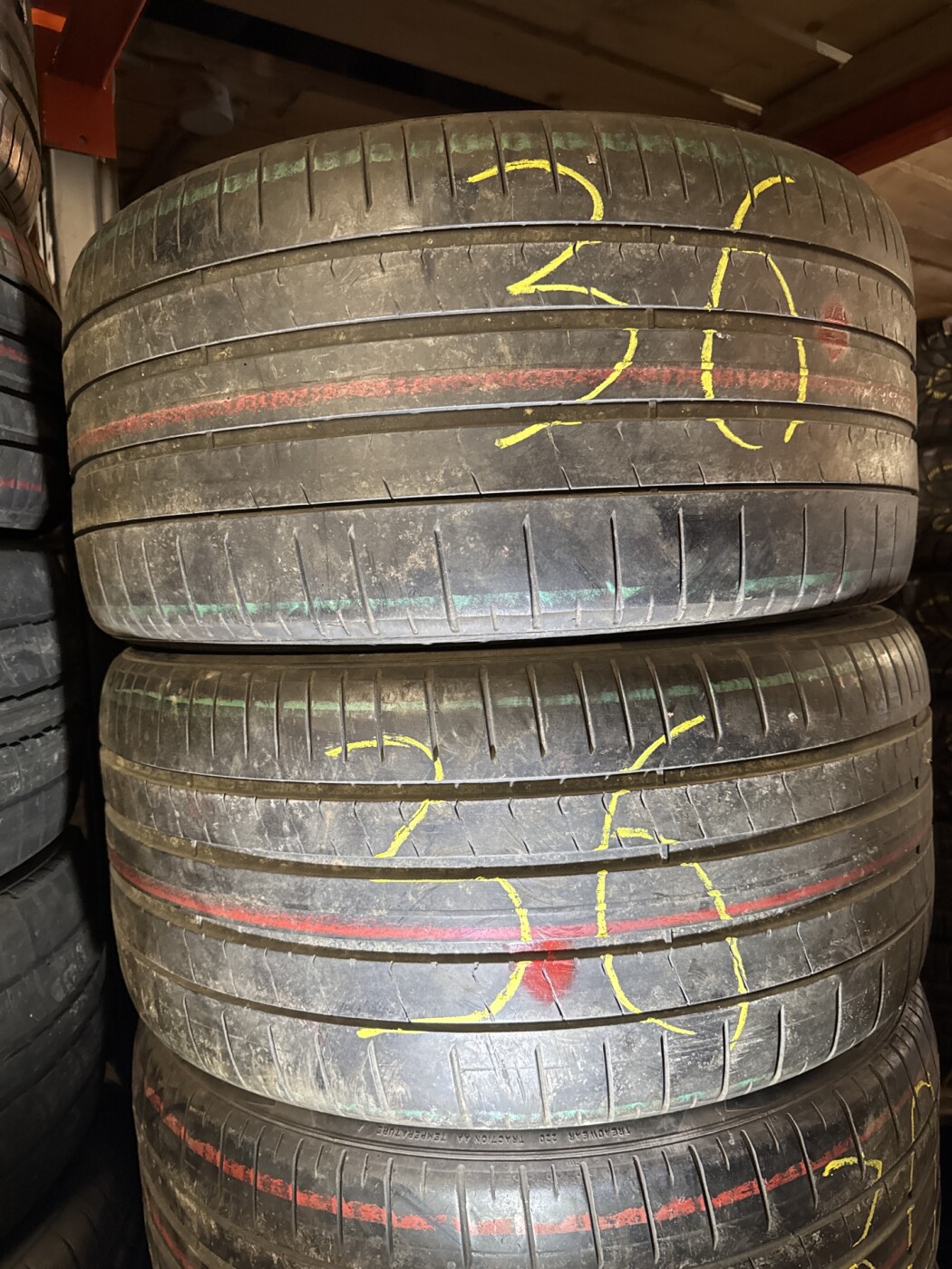 Разноширокий комплект с 315/40/21. Остаточная глубина протектора 6 мм.